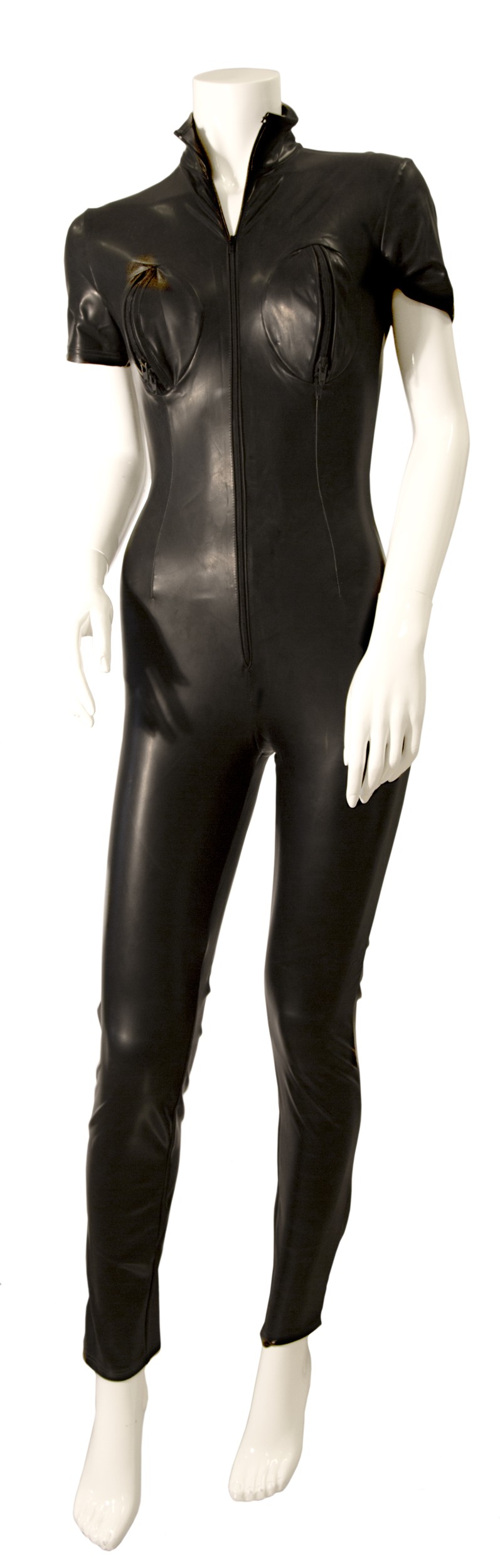 CZARNY ELASTYCZNY KOMBINEZON Z DATEXU Czarny catsuit wykonany z lateksu, wewnątrz posiada miękką podszewkę wykonaną z elastycznej tkaniny, dzięki temu materiał nie przylega do skóry a kombinezon można łatwo założyć bez użycia specjalistycznych proszków lub olejków. Kombinezon z krótkim rękawem idealnie obejmuje całe Twoje ciało, zapinany jest z przodu na długi zamek. Noś go w połączeniu z parą Twoich ulubionych szpilek aby osiągnąć pełny efekt. DATEX wykonany jest z naturalnego lateksu oraz bardzo rozciągliwej tkaniny. Duża rozciągliwość i wytrzymałość to główna zaleta tego materiału, dzięki czemu produkty można łatwo zakładać i zdejmować. Datex sprawia, że czujesz się komfortowo, jednocześnie zapewniając tradycyjną jakość lateksu. Unikalne cechy tego materiału dają nieograniczone i rewolucyjne możliwości w produkcji odzieży. Teraz odzież lateksowa może być szyta w zwykły sposób bez klejenia. Co więcej, szwy stają się mocniejsze dzięki wyjątkowej jakości. Wszystkie oferowane przez nas produkty Datex są wytwarzane w Europie. Instrukcja użytkowania: