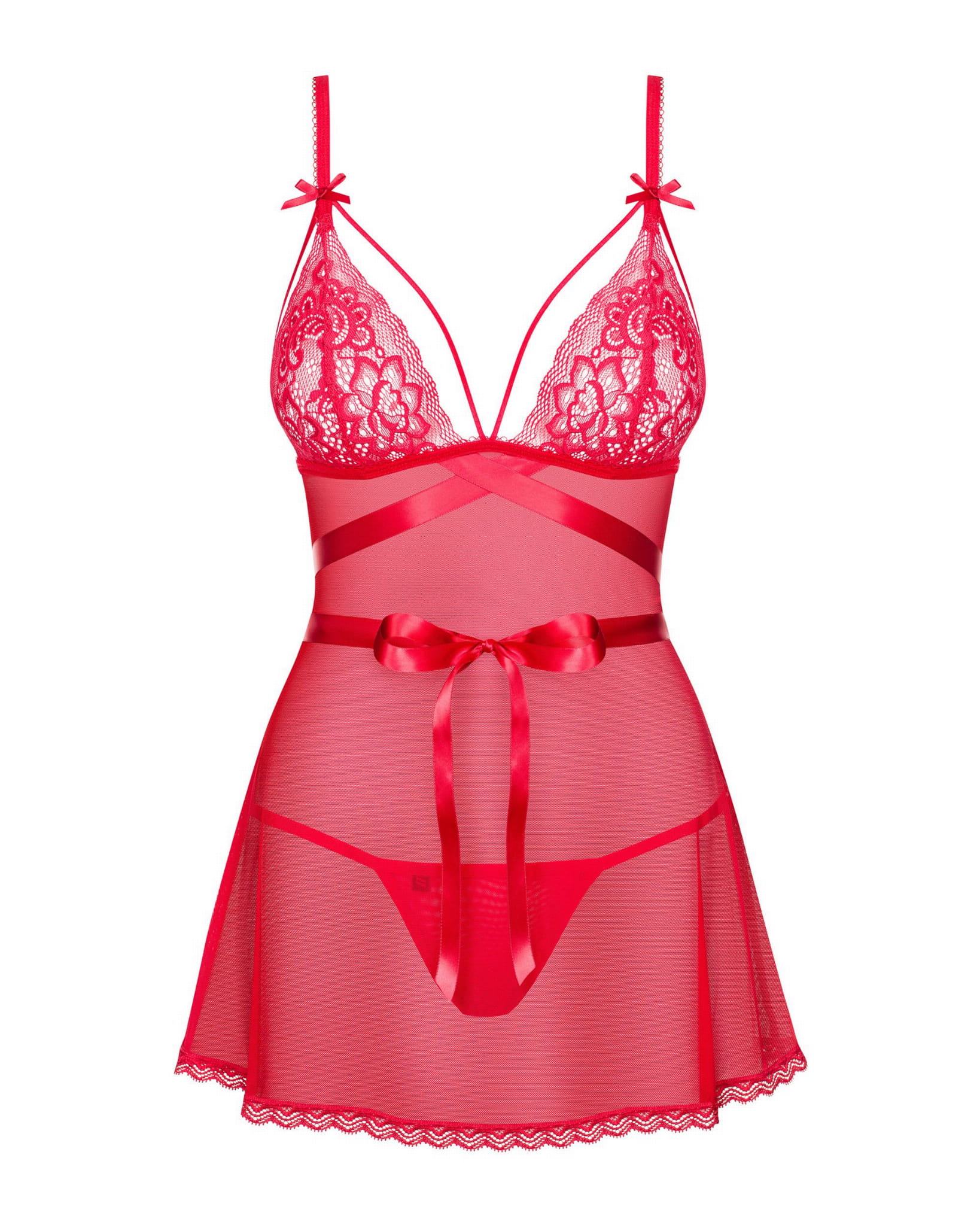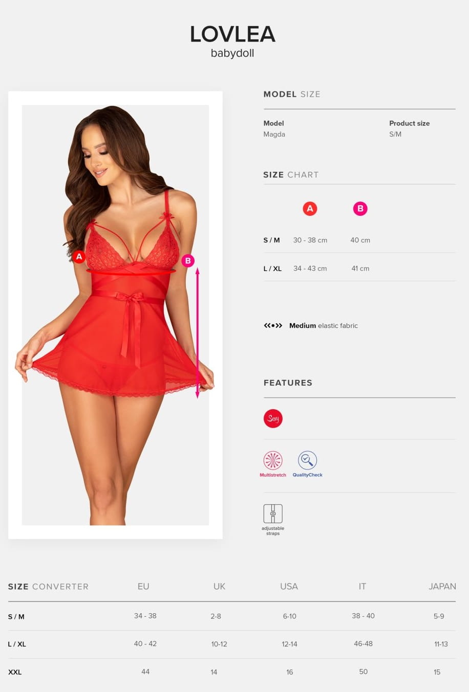 Nie musisz szukać mnóstwa dodatków, żeby stworzyć idealną stylizację na specjalną okazję. Zdecydowanie wystarczy Ci słodka, lecz seksowna koszulka w kolorze intensywnej czerwieni. Głęboki dekolt i kokieteryjne kokardki są w stanie na pewno rozgrzać atmosferę ! Oto właśnie babydoll Lovlea - niebanalny krój i design dzięki satynowej wstążce wiązanej z przodu. Sprawdź, jak przyciąga rozkosznie ognista czerwień. Postaw na delikatność uroczych detali i piękną koronkę podkreślającą piersi. To co ? Masz ochotę poczuć się naprawdę kobieco ? Będziesz w niej wyglądała wspaniale. Pewnie już nie możesz się doczekać tych przyjemnych wieczorów we dwoje …