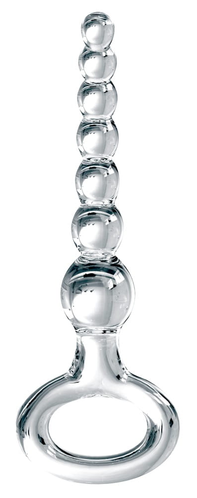 Piękny i elegancki specjalistka od przyjemności - na całe życie ! Elegancja, wyrafinowanie i wysoka jakość doskonale charakteryzują szklane koraliki analne nr 67 amerykańskiej firmy Pipedream. Ekskluzywny i ręcznie robiony korek analny w formie połączonych ze sobą kulek z praktycznym uchwytem - kółkiem powrotnym, jest idealny do penetracji i łagodnie zakrzywiony. Ta luksusowa linia szklanych korków zapiera dech w piersiach ! Wyprofilowane kulki zapewniają dodatkową stymulację podczas penetracji analnej ( stymulacja punktu P i prostaty u mężczyzn ), oraz podczas penetracji waginalnej ( stymulacja punktu G ). Idealne dla osób początkujących w zabawach analnych, gdyż zwężająca się końcówka ułatwia wkładanie, a szeroki i okrągły uchwyt u podstawy pozwala mięśniom odbytu owinąć się i przytrzymać gadżet, oraz łatwo go wyjąć. Dildo wykonane jest z hipoalergicznego i nieporowatego szkła borokrzemowego . Dzięki niezwykłym właściwościom tego szkła dildo ma idealnie gładką, nieporowatą powierzchnię bezpieczną dla ciała. Aby dodatkowo podkręcić wrażenia ze stymulacji można je łatwo podgrzać w gorącej wodzie, lub schłodzić w lodówce. Szkło borokrzemowe przewyższa właściwościami tradycyjne szkło. Co ważniejsze, jego skład jest uszlachetniony, ponieważ cechuje je niższy współczynnik rozszerzalności cieplnej, a w związku z tym, jest bardziej odporne na nagłą zmianę temperatury, a dodatkowo lżejsze. Posiada wyjątkową odporność na zmianę temperatur oraz bardzo dobre właściwości termiczne, wysoką odporność chemiczną i odporność na wstrząsy. Brak podatności na matowienie. Dla przyjemnej i jeszcze bardziej intensywnej stymulacji zalecamy stosowanie lubrykantów na bazie wody. Pamiętaj, aby oczyścić dildo za pomocą ciepłej wody, łagodnego mydła i środka czyszczącego do zabawek erotycznych. Można go również bezproblemowo myć w zmywarce ! Uwaga : jako przedmiot ręcznie dmuchany, kolor szkła i przezroczystość mogą się różnić od zdjęć pokazowych producenta. Przy właściwej pielęgnacji ta zabawka analna będzie Ci służyć przez całe życie !