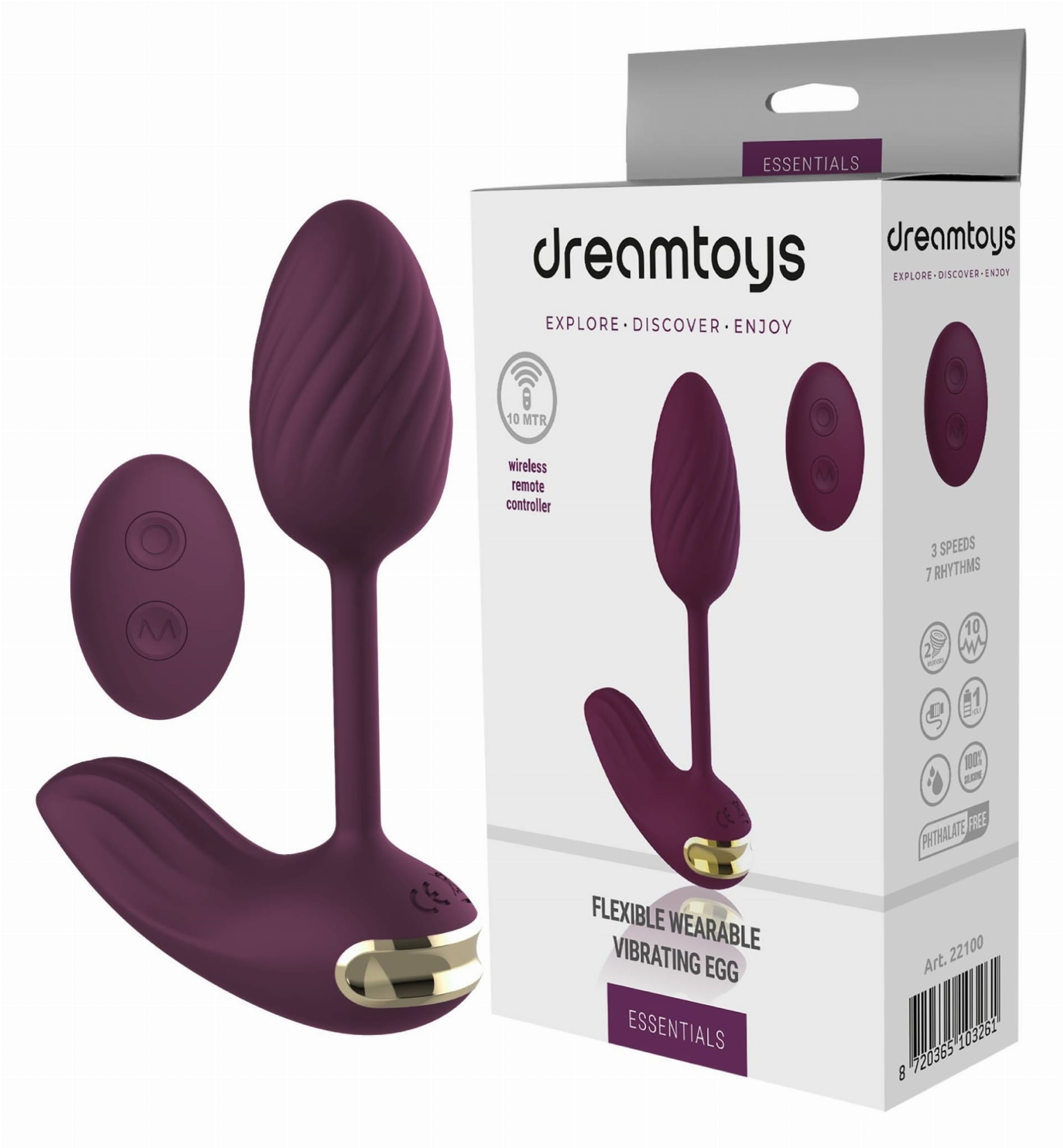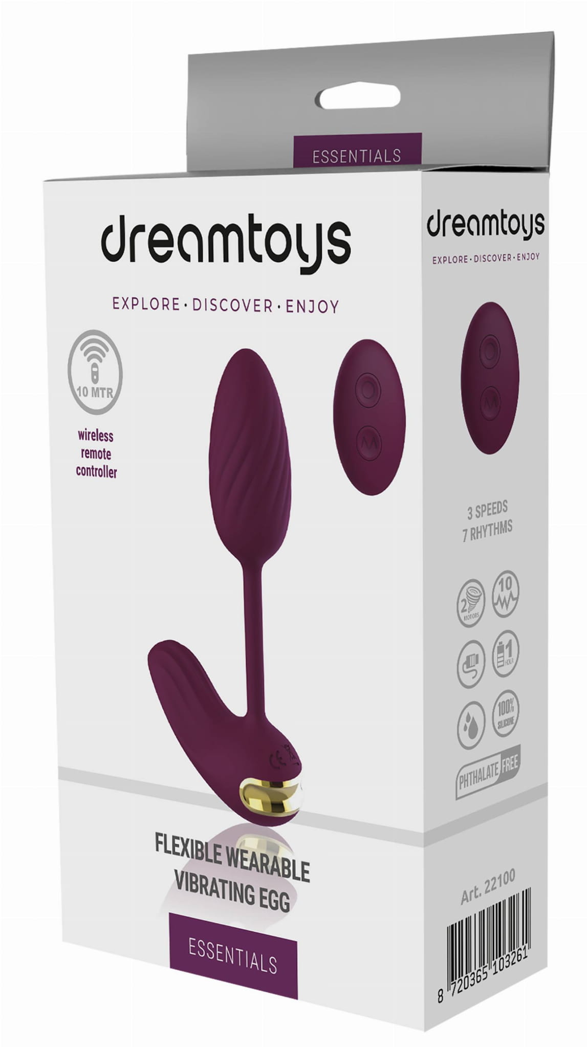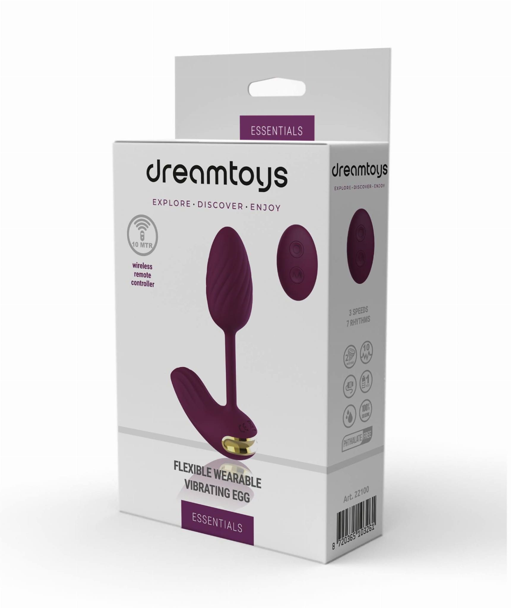 Essentials jest wyposażone w bezprzewodowy pilot zdalnego sterowania o zasięgu do 10 metrów ( nie jest wodoodporny ), dzięki czemu masz całkowitą swobodę kontrolowania wibracji i rytmów bez konieczności używania panelu sterowania na zabawce. Ponadto dzięki wodoodporności jajka ( klasa IPX6 ) można go używać pod prysznicem.