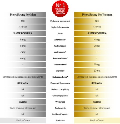 Jeśli chcesz spełnić te pragnienia, wypróbuj działanie niesamowitych perfumów z feromonami dla mężczyzn PheroStrong EXCLUSIVE ! Feromony PheroStrong - Atrybut Atrakcyjności Wydzielając duże ilości feromonów, nie trzeba być atrakcyjnym fizycznie, by mieć ogromne powodzenie u płci przeciwnej - mówi chemik dr hab. Leszek Konopski – pracownik Instytutu Przemysłu Organicznego w Warszawie. Niestety ludzkie feromony uległy osłabieniu z powodu m. in. zbyt szybkiego trybu życia, oraz wpływu wielu czynników cywilizacyjnych. Jest nam więc trudniej budować relacje międzyludzkie i z sukcesem docierać do drugiego człowieka. |