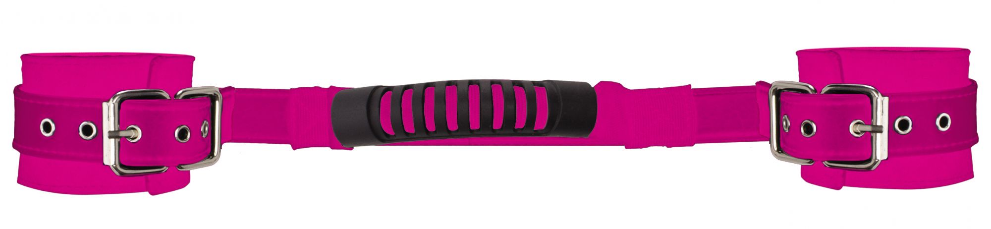 Dodaj dodatkowy element kontroli do Waszej ulubionej zabawy. Szukasz kajdanek z uchwytem stworzonych do ostrej zabawy ? Nie szukaj dalej. Kajdanki są komfortowe i bardzo wytrzymałe, gdyż wykonane z dobrej jakości skórzanych pasków z miękka warstwą wewnętrzną. Będą odpowiednie dla każdej wielkości nadgarstków dzięki regulowanym zapięciom na sprzączkę. Unikalny uchwyt pozwala na łatwe trzymanie Partnera z tyłu i jego kontrolowanie, oraz do szybkiego pozycjonowania i dominacji. Chwyć gumowy uchwyt, aby przyciągnąć związanego Partnera bliżej, lub przymocuj go do zagłówka/słupka łóżka za pomocą dowolnego i ulubionego kompatybilnego gadżetu. Kolor : różowy