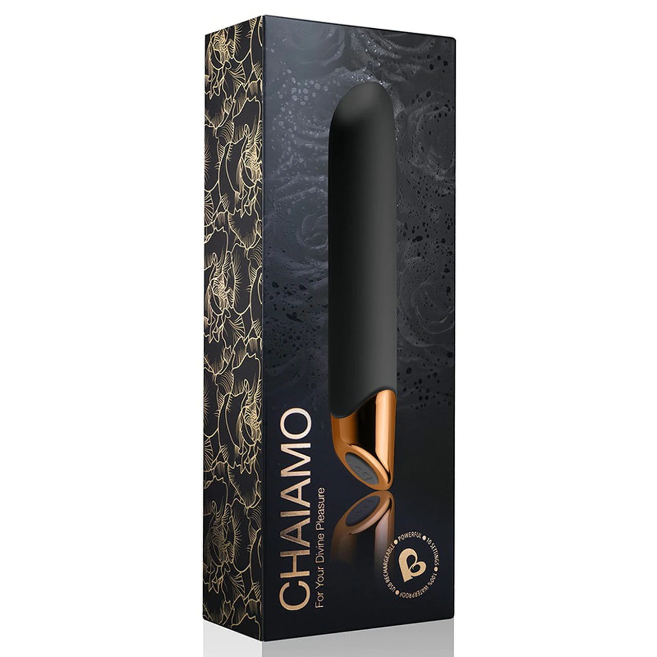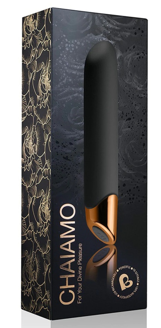 Dla twojej Boskiej przyjemności ! Piękny w swej prostocie i szalenie elegancki wibrator stworzony z myślą o zapewnieniu zadziwiających orgazmów, raz za razem, nawet tym kobietom, które uskarżają się na małą wrażliwość stref intymnych na bodźce. Dzięki 10 bardzo wydajnym i silnym rodzajom wibracji, które mogą Cię pieścić nawet do 3 godzin ( ! ), będziesz miała duże trudności z odłożeniem zabawy z CHAIAMO na później. Najwyższej jakości, aksamitny i jedwabiście miękki w dotyku silikon typu platynowego pokrywa wibrator aż do platerowanej końcówki. Panel sterowania to tylko jeden przycisk służący do włączenia i wyłączenia gadżetu, oraz do zmiany rodzaju wibracji. Wibrator łatwo wkłada się do pochwy dzięki miękkiej i śliskiej powierzchni silikonu. Po włożeniu wibratora ustaw żądaną intensywność wibracji na panelu sterowania. Dostępnych jest 10 różnych i bardzo silnych trybów wibracji, a stożkowa końcówka została znakomicie zaprojektowana, aby doprowadzić Cię do ostatecznego punktu kulminacyjnego. CHAIAMO wysyła zmysłowe, silne i głębokie wibracje po całym ciele, jednocześnie intensywnie stymulując Twoje strefy przyjemności. Przygotuj się na przeżycie swojego niezapomnianego orgazmu ! Zawsze używaj lubrykantów na bazie wody dla dodatkowego poślizgu. Środki na bazie silikonu mogą bezpowrotnie uszkodzić delikatną powłokę silikonu. Do czyszczenia używaj letniej, bieżącej wody i łagodnego mydła. Aby zachować szczególną ostrożność, zalecamy specjalne środki odkażające typu Toy-cleaner. CHAIAMO jest także wodoodporny - nie musisz rezygnować z ekscytującej przyjemności podczas kąpieli.