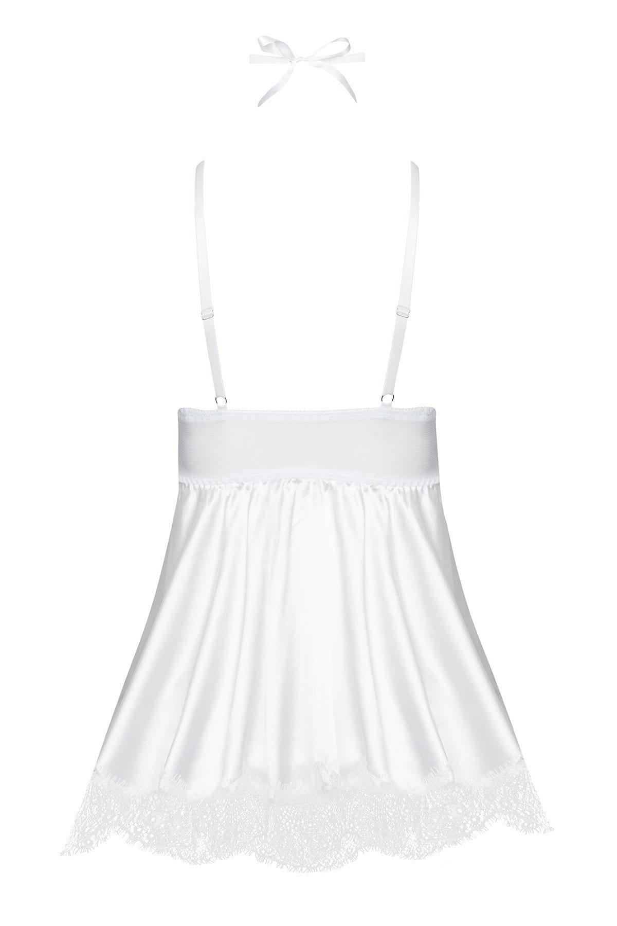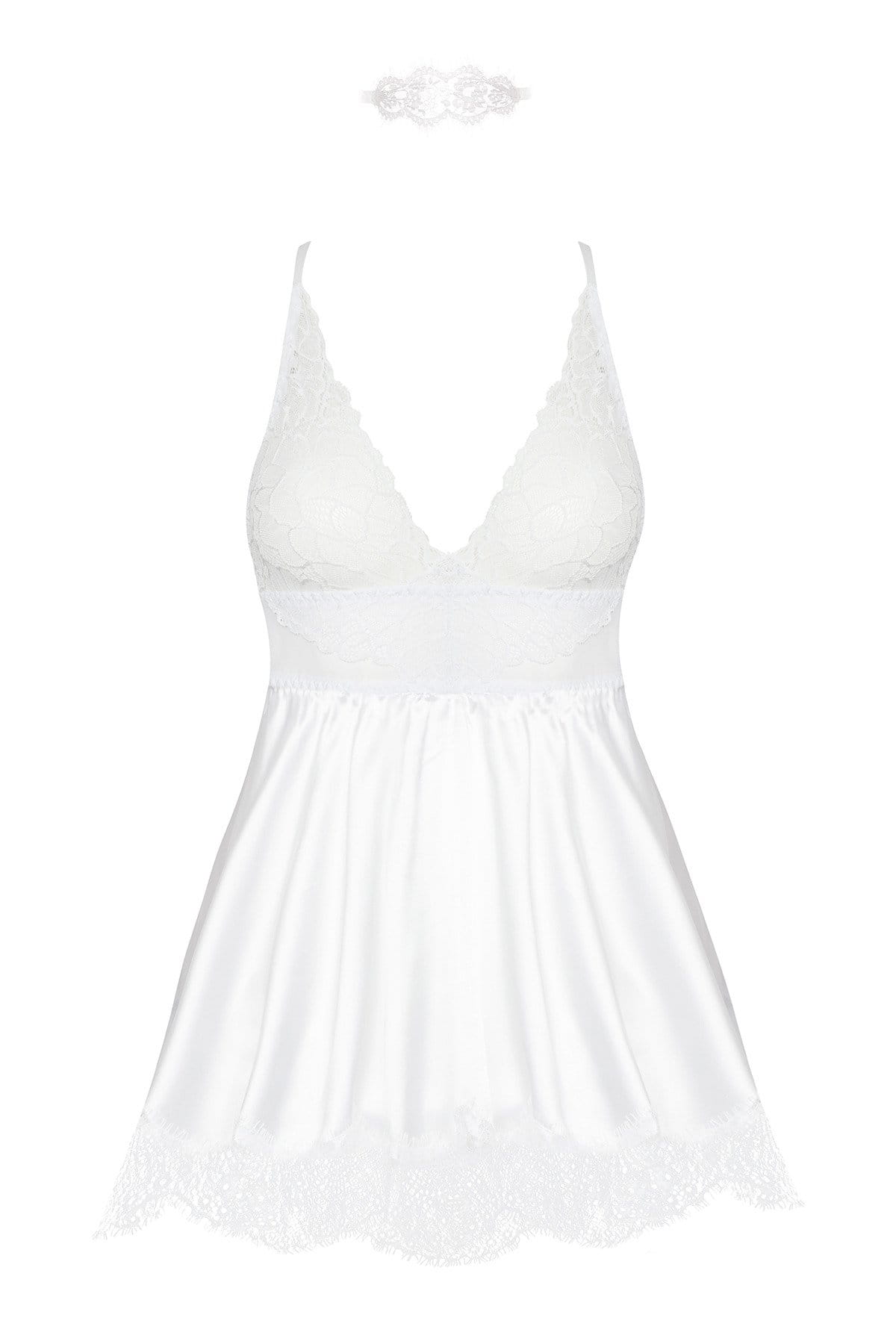 KOMPLET EVE BIAŁA SATYNOWA KOSZULKA I MASKA