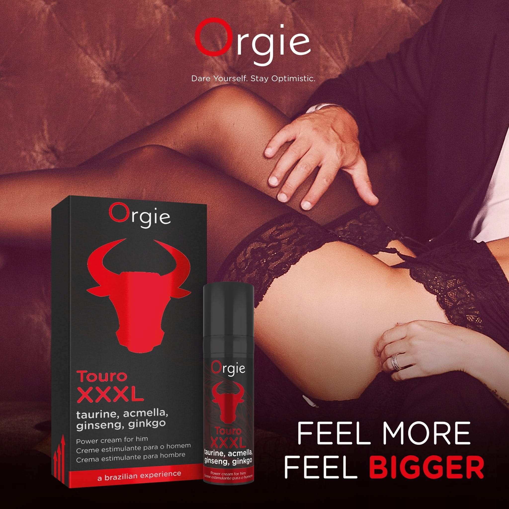 Touro XXXL portugalskiej firmy Orgie to bardziej skoncentrowana i mocniejsza odmiana kremu na erekcję „Touro”. Nałożenie tego kremu na penisa i żołądź pozwala w kilka chwil uzyskać silną i długotrwałą erekcję na erotyczne i intymne spotkania.