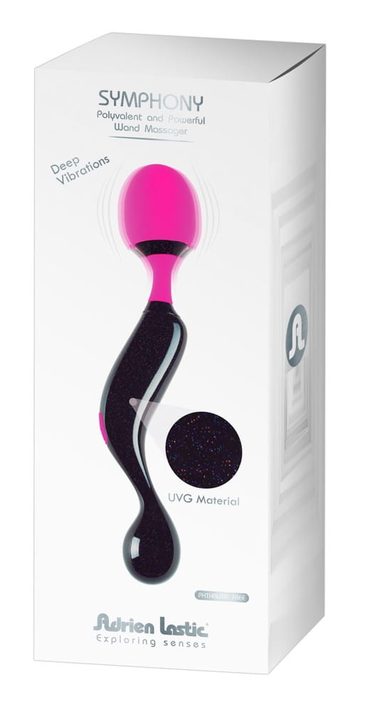 Adrien Lastic zaleca stosowanie lubrykantów na bazie wody przy używaniu wszystkich produktów z silikonu medycznego. Nie używaj silikonowych lubrykantów, olejków ani kremów z jakimkolwiek silikonowym gadżetem, ponieważ mogą one uszkodzić materiał i ograniczyć jego działanie i trwałość. Dokładnie umyj zabawkę przed i po każdym użyciu ciepłą wodą z łagodnym mydłem. Przechowuj masażer Symphony Adrien Lastic w miejscu wolnym od kurzu i trzymaj z dala od innych zabawek erotycznych. Unikaj pozostawiania w bezpośrednim świetle słonecznym i NIGDY nie wystawiaj na działanie ekstremalnych temperatur.