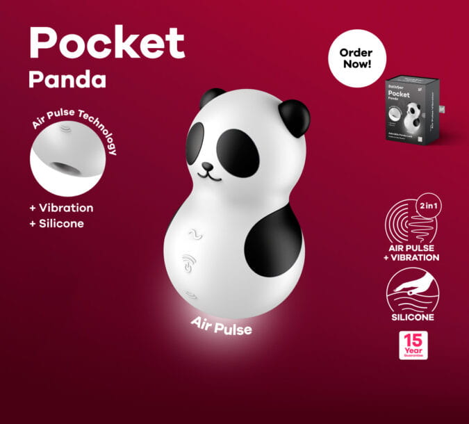 Satisfyer Pocket Panda – jednoczesna stymulacja łechtaczki za pomocą fal ciśnienia i wibracji. Niemożliwie słodki masażer z pulsującym powietrzem, który na pewno oczaruje Ciebie i Twoje punkty rozkoszy. Dzięki niewielkim rozmiarom jest to idealny masażer dla początkujących i wszystkich, którzy szukają uroczego dodatku do swojej kolekcji zabawek erotycznych. Satisfyer Pocket Panda oferuje 11 intensywności stymulujących bezdotykowo fal ciśnienia w innowacyjnej i opatentowanej technologii Satisfyer Air Pulse oraz 12 programów wibracji, dzięki czemu robi znacznie więcej niż inny klasyczny masażer, który dysponuje tylko wibracjami. Łącz jego ekscytujące funkcje, lub używaj ich osobno. Jest to możliwe dzięki pracy 2 niezależnie sterowanych silników i bardzo intuicyjnemu panelowi sterowania. Satisfyer Pocket Panda wykonany jest z super miękkiego, aksamitnie gładkiego i przyjaznego dla ciała silikonu klasy medycznej, który jest całkowicie bezpieczny i wyjątkowo higieniczny. A to jeszcze nie wszystko, gdyż dzięki wodoodpornemu wykończeniu ( klasa IPX7 ) możesz zabrać go nawet pod prysznic lub do wanny. Absolutnie panda-stic !