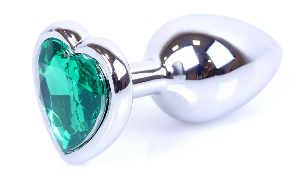 METALOWY KOREK ANALNY SILVER HEART GREEN