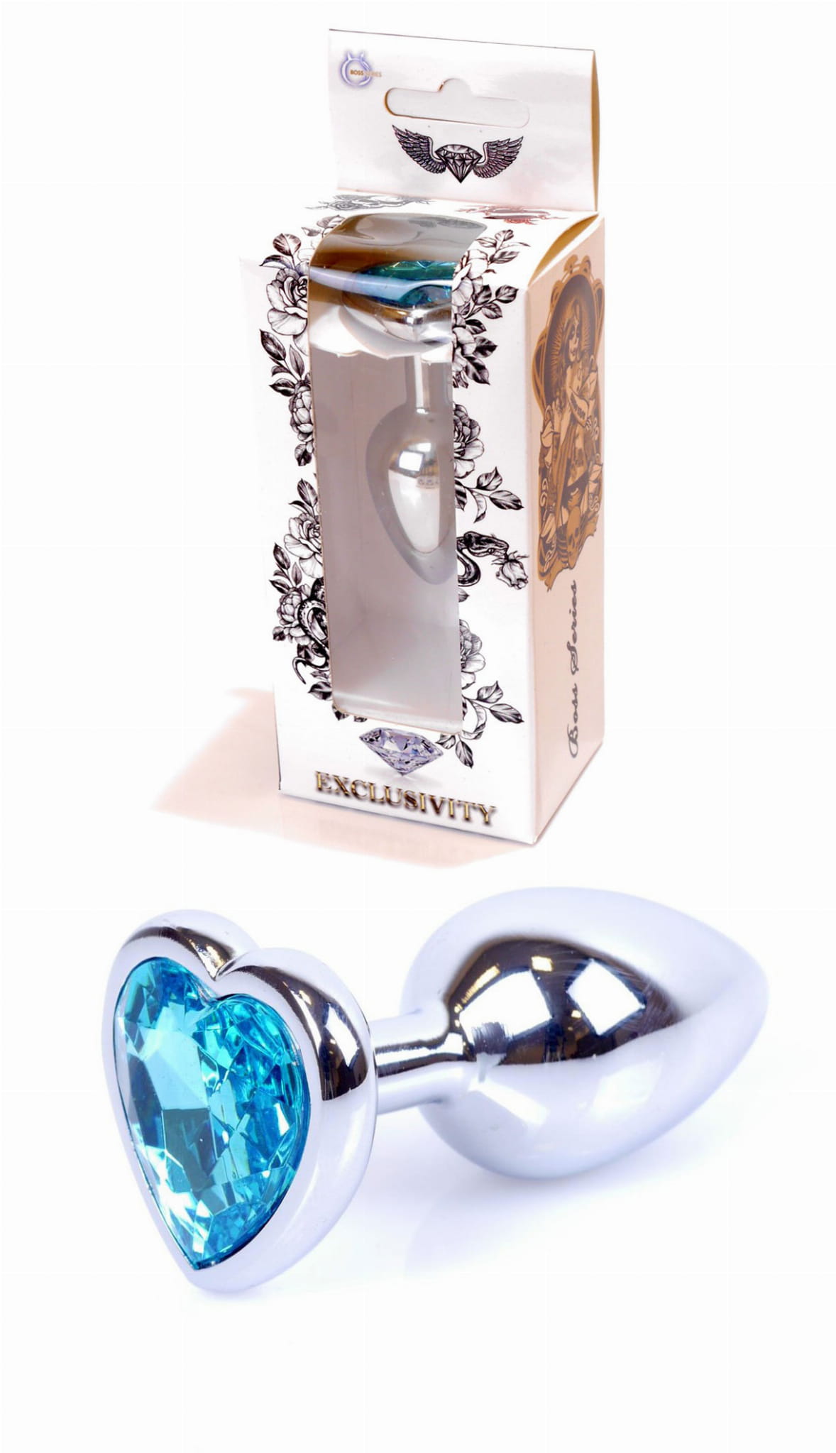 METALOWY KOREK ANALNY SILVER HEART LIGHT BLUE