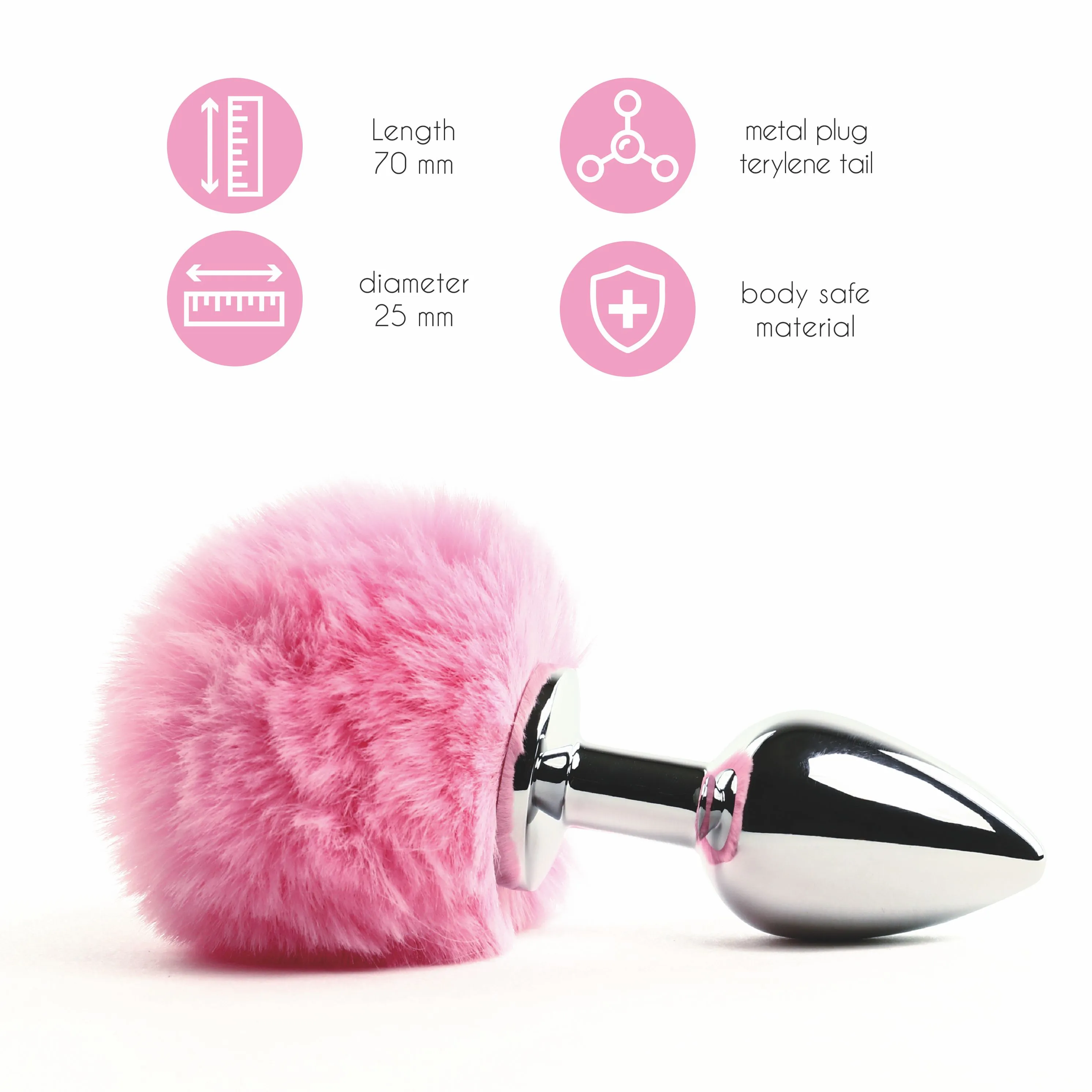 Shake your bun bun ! Elegancki korek analny Bunny Tails Butt Plug Pink ozdobiony jest uroczym, puszystym ogonem w delikatnym różowym kolorze. Kształt ogona jest dokładnie taki, jak u zabawnego, figlarnego króliczka, co daje wiele możliwości odgrywania ról. Anatomiczny kształt oraz idealnie gładka powierzchnia sprawiają, że korek bardzo łatwo jest wprowadzić nawet osobie bez wcześniejszego doświadczenia z gadżetami analnymi. Seksowna i puszysta, królicza kitka sprawi, że poczujesz większe podniecenie, a Partner widząc to wprost oszaleje z zachwytu. Korek współpracuje z lubrykantami każdego rodzaju. Możesz używać do zabaw z nim żeli na bazie wody jak i tych na bazie silikonu.