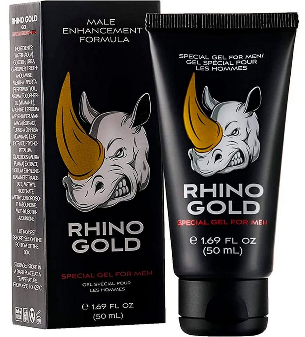 Rhino Gold jest żelem, którego składniki efektywnie eliminują problem dysfunkcji seksualnych. Swoją moc zawdzięcza w 100 % naturalnemu składowi, który nie zawiera żadnych barwników, przeciwutleniaczy lub ulepszaczy. Jego formuła zawiera ekskluzywne połączenie liścia Damiana, Muira Puama, peruwiańskiej Maca i L-argininy.