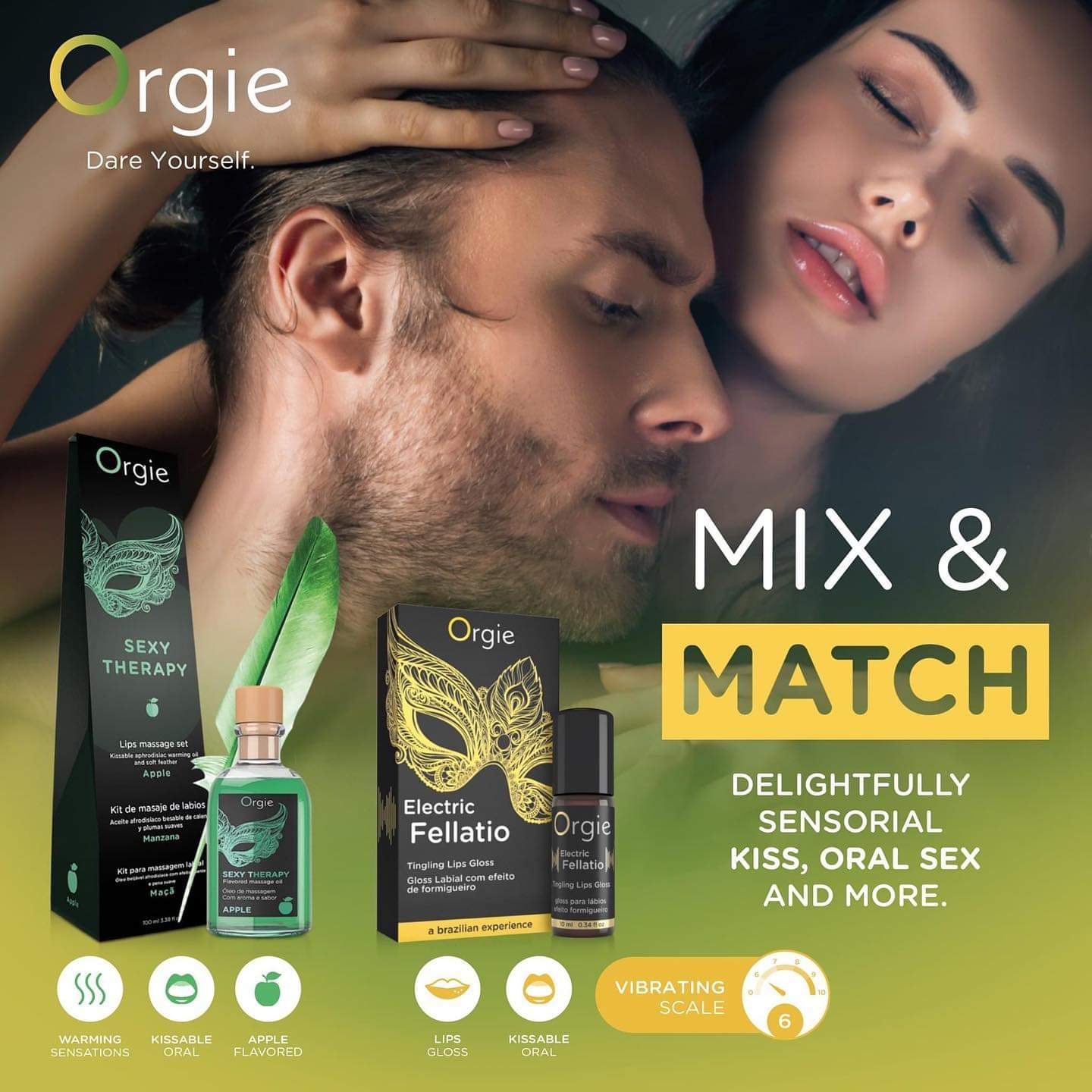Ten zestaw jest idealny do seksu oralnego, oraz łaskotania, masowania i podniecających pocałunków wszystkich Waszych stref erogennych podczas gry wstępnej. Olejek w kontakcie ze skórą tworzy przyjemny efekt termiczny, który pomaga stymulować wrażliwość skóry na rozgrzanie i pobudzenie. Nałóż niewielką ilość olejku na okolice intymne Partnera, które chcesz pobudzić i całować. Orgie łączy technologię, wiedzę i dbałość o szczegóły, aby zapewnić najlepsze produkty dla przyjemności i wrażliwości. Z produktami portugalskiej firmy Orgie możesz uwolnić się i zintensyfikować swoją przyjemność i zmysłowość. Dare Yourself ! Środki ostrożności : nie stosować na podrażnioną lub zranioną skórę. W przypadku podrażnień zaprzestać stosowania preparatu i obficie spłukać wodą. W przypadku kontaktu z oczami przemyć dużą ilością wody. Produkt należy umieścić w chłodnym i suchym miejscu. Trzymać z dala od dzieci. Tylko do użytku zewnętrznego. Nie spożywać.