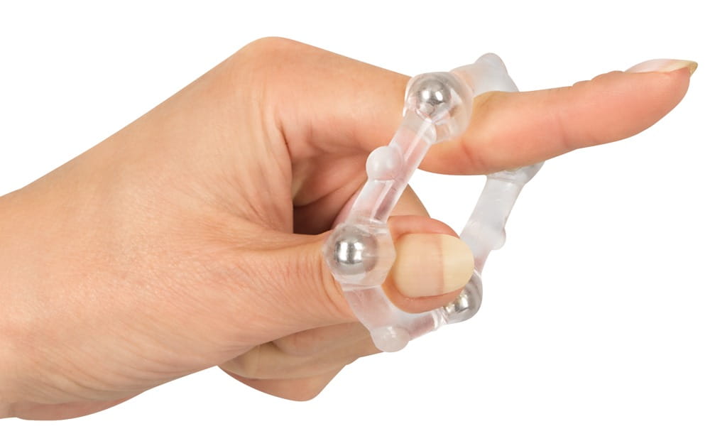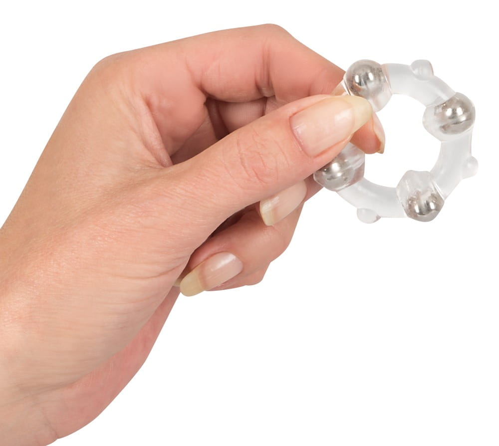 Dla super erekcji ! Przezroczysty pierścień erekcyjny na penisa z 4 zintegrowanymi metalowymi koralikami. Zapewnią dla Twojej partnerki intensywną stymulację łechtaczki w tym samym czasie. Pierścień na penisa jest miękki i ma elastyczną wewnętrzną średnicę, która dopasuje się do wszystkich rozmiarów penisa ! Można nosić go również z prezerwatywą - na pewno pozostanie wtedy tam, gdzie być powinna !