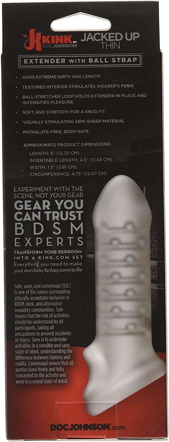 PRZEDŁUŻAJĄCA NAKŁADKA NA PENISA KINK JACKED UP THINCzasami po prostu chcesz trochę więcej ! Z myślą o takich sytuacjach stworzona została przedłużająca nakładka na penisa Kink Jacked Up Thin. Wystarczy ją nałożyć, aby od razy zwiększyć długość i obwód penisa. Nakładka posiada wbudowany cockring, czyli pierścień erekcyjny. Dzięki niemu Twoja erekcja będzie nie tylko bardziej okazała i dłuższa, ale także samo zbliżenie będzie dużo przyjemniejsze. Jak działa pierścień erekcyjny ? Penis w stanie spoczynku należy przełożyć przez pierścień razem z jądrami. Po osiągnięciu erekcji, pierścień blokuje odpływ krwi z penisa, co skutkuje trwalszą i silniejszą erekcją, oraz zwiększoną wrażliwością na bodźce. Każdy ruch i pchnięcie daje dodatkową przyjemność. Przedłużka wykonana została w całości z termoplastycznego elastomeru ( TPE ), materiału charakteryzującego się niezwykłą elastycznością i wytrzymałością. Nakładka Kink Jacked Up Thin może być wykorzystywana wielokrotnie wraz z lubrykantem na bazie wody. Jest bardzo łatwa do utrzymania w czystości. Wystarczy umyć ją pod bieżącą wodą z dodatkiem dobrej jakości mydła antybakteryjnego i dokładnie wysuszyć. Kolor : frost