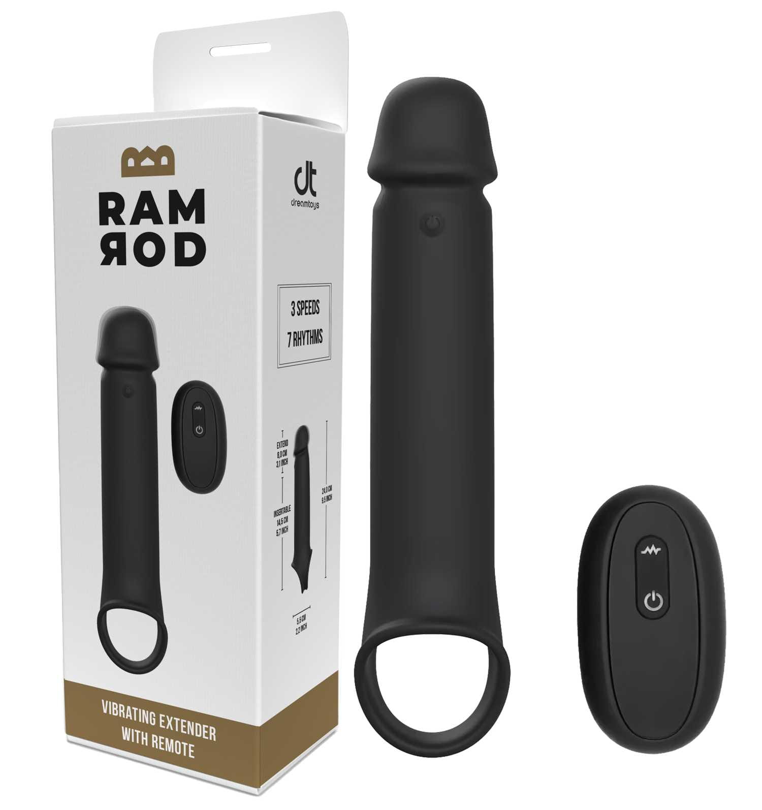 PRZEDŁUŻAJĄCA WIBRUJĄCA NAKŁADKA NA PENISA Z PILOTEM RAMROD