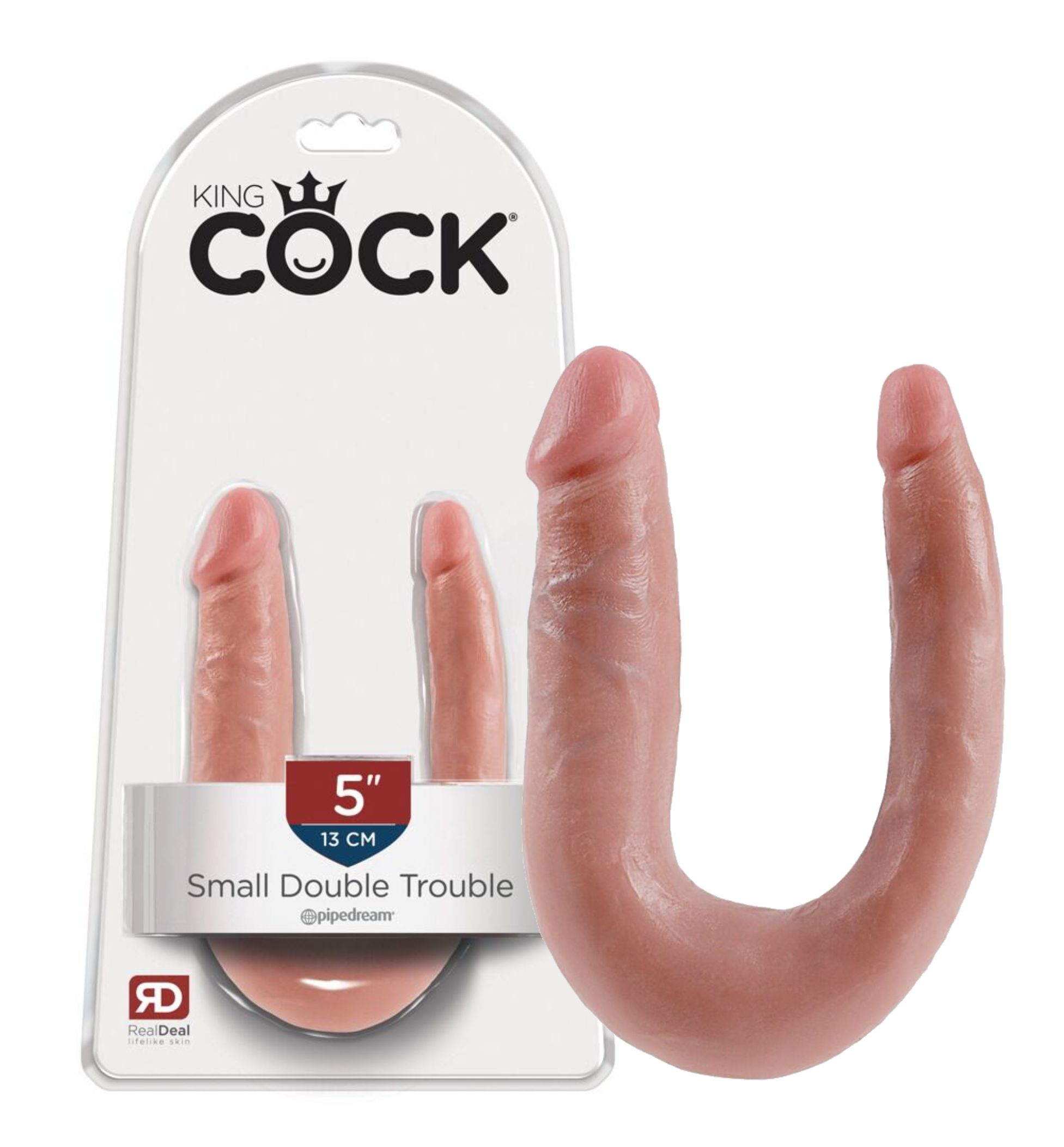 Dla podwójnej przyjemności - dosłownie ! Realistyczne i dwustronne dildo z wyraźnie zaznaczoną żołędzią penisa i żyłkami - wyjątkowo elastyczne. Z tym naturalnie wyglądającym i podwójnym dildem, zmysłowa przyjemność jest gwarantowana. Double Trouble oczaruje Cię swoim bardzo realistycznym wyglądem. Masuje Cię stymulującym trzonem od razu po włożeniu – a dzięki ultraelastycznej konstrukcji, Double Trouble z łatwością znajduje Twoje wewnętrzne punkty przyjemności. Każda żyłka, każdy kawałek dilda i każde wybrzuszenie jest starannie i ręcznie wykonane z wielką dbałością o wyszukane detale, aby dać Ci najbardziej realistyczne doświadczenia. Pipedream King Cock U-Shaped Double Trouble Small Flesh to podwójne dildo o cielistym kolorze, stworzone z myślą o użytkownikach poszukujących funkcjonalności i wygody. Precyzyjnie zaprojektowana, elastyczna konstrukcja w kształcie litery U umożliwia jednoczesne użytkowanie na dwa rożne sposoby lub w duecie, oferując szerokie możliwości zastosowania. Wykonane z wysokiej jakości materiału PVC, charakteryzuje się wytrzymałością oraz miękkością, a także realistyczną powierzchnią z subtelną teksturą. Dildo King Cock wykonane zostało w nowoczesnej fabryce amerykańskiej firmy Pipedream zgodnie z rygorystycznymi standardami jakości. Jest wolne od ftalanów, nie zawiera lateksu, jest bezpieczne dla ciała i hipoalergiczne. Co najważniejsze, King Cock jest produkowane w USA.
