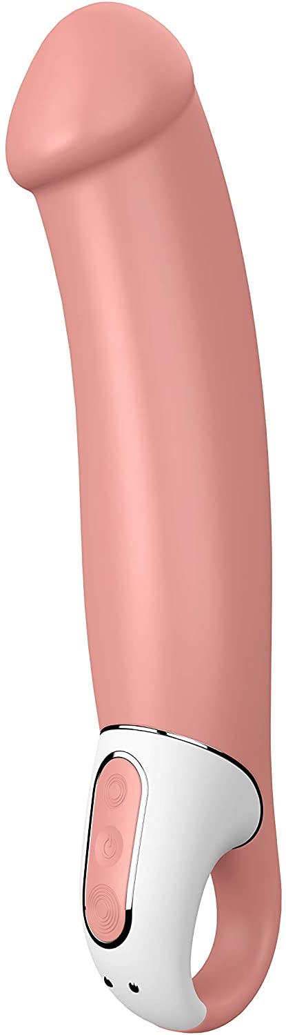 Głębokie wibracje i zmysłowy rozmiar XXL - imponujący wibrator z miękkim, satynowym wykończeniem. Niemiecka firma Satisfyer, po zrewolucjonizowaniu świata w stymulacji łechtaczki, rozpoczyna atak na Twój punkt G ! Wielkie pragnienie wymaga wyjątkowych wibracji ! Dobrze, że ten ,,duży facet" w swej całej okazałości, wykonany został z urzekająco miękkiego silikonu medycznego i jest pod ręką, gdy tylko masz na to ochotę. Dzięki 12 imponującym programom wibracji, a także elastycznemu trzonowi o średnicy 4,7 cm i ok. 17 cm długości użytkowej, wibratorowi Master niczego nie brakuje. Jego minimalistyczny design, z obszerną, stylizowaną na główkę penisa końcówką i lekkim wygięciem do stymulacji punktu G, jest szczególnie uwodzicielski, dając kobietom, które wiedzą, czego chcą, cudowne uczucie pełnego wypełnienia ... Czy poradzisz sobie z tym dużym chłopcem ? Specjalnie ukształtowana rączka gadżetu pozwoli Ci zawsze zachować nad nim kontrolę, a intuicyjny panel sterowania nie przeszkadza i nie rozprasza podczas erotycznej zabawy. 12 wyjątkowo mocnych i cichych programów wibracji składa się z 6 rodzajów intensywności i 6 niebiańskich rytmów. Wibracje są idealnie rozłożone na całej długości trzonu wibratora, dzięki czemu intensywnie pobudzają zarówno czubek, jak i dolną część Mastera. Gładki trzon wibratora Master został wykonany z wysokiej jakości silikonu medycznego z użyciem technologii Silicone Flex, co sprawia, że jest on szczególnie giętki i przenosi silne wibracje bezpośrednio do najczulszych miejsc.