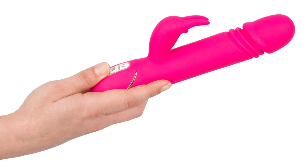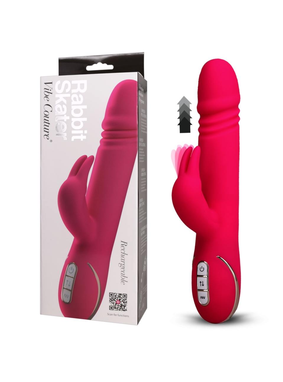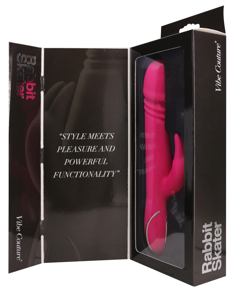 Kochanek, który uzależnia ! Ten pięknie zaprojektowany różowy wibrator z króliczkiem zapewnia tylko czystą i zmysłową przyjemność. Podwójna warstwa silikonu medycznego najwyższej jakości sprawia, że wibrator w dotyku jest cudownie aksamitny, miękki i delikatny. Dzięki temu daje bardzo realistyczne odczucia. Rabbit Skater posiada 2 niezależnie sterowane i pracujące silniki. W małym stymulatorze łechtaczki w kształcie króliczka znajduje się jeden silnik zapewniający 7 różnych i potężnych rodzajów wibracji. Łagodnie zaokrąglona główka ze stymulującymi rowkami ukrywa w sobie tajemnicę nie tylko idealnej stymulacji punktu G ! Ukryty w niej drugi silnik posiada funkcję pchnięć i drgań ,,push" w 3 różnych prędkościach i intensywnościach. Zabierz ze sobą wibrator do łazienki i ciesz się jego wszystkimi funkcjami w wannie lub pod prysznicem, ponieważ jest wodoodporny ! Pięknie zaprojektowany i niebywale elegancki wibrator ze złotymi elementami dekoracyjnymi na intuicyjnym i prostym w obsłudze panelu sterowania - jest idealnym towarzyszem Twojej podróży do krainy rozkoszy. Pamiętaj o aplikacji ulubionego lubrykantu na bazie wody. Wbudowany akumulator daje dla Skatera wielką moc, a 2,5 godziny ładowania zapewniają kilka godzin pracy !