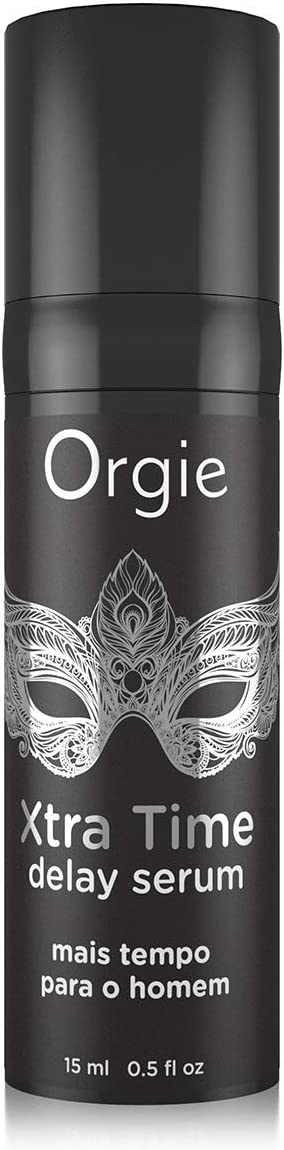 Orgie Xtra Time Delay Serum - silikonowe serum opóźniające wytrysk. Bez środków znieczulających. Xtra Time Delay Serum zawiera najwyższej jakości silikon, który tworzy ochronny film na penisie, zmniejszając jego wrażliwość, redukując tarcie, a tym samym wydłużając czas stosunku płciowego. Nie zawiera składników znieczulających, takich jak benzokaina i lidokaina. Daj sobie, a przede wszystkim Jej dodatkowy czas dzięki Xtra Time Delay. Przecież bliskości, pieszczot i przyjemności nigdy za wiele, a delikatna konsystencja serum pozwoli Wam cieszyć się nim w pełni. Produkt przeznaczony dla mężczyzn. Opakowanie daje 75 dawek produktu. Doznania : lekkie uczucie ciepła plus wrażenie lekkiej warstwy silikonu na penisie. Podsumowanie :