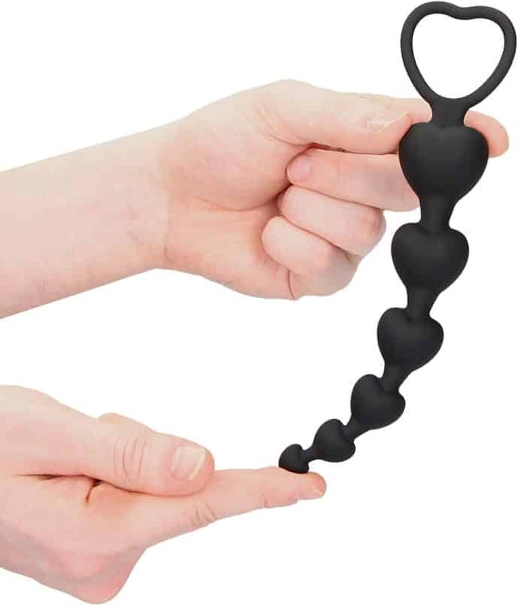Czarne koraliki analne o kształcie zbliżonym do serc dla wszystkich, którzy szukają różnorodnych doznań analnych. Jeśli szukasz czegoś ładnego do zaspokajania swoich intymnych potrzeb, poprzez analną penetrację, to te koraliki analne są właśnie dla Ciebie ! Koraliki wykonane są wyłącznie z wysokiej jakości silikonu medycznego, który zapewnia im niezbędną elastyczność, bezwonność, całkowite bezpieczeństwo w użytkowaniu, oraz jedwabiście gładką powierzchnię, której każdy centymetr został stworzony po to, by sprawić Ci przyjemność. Koraliki analne mają nietypowy kształt serc. Pozwala to na bardzo przyjemne doznania. Możesz je używać podczas zabaw solo, jak i razem z Partnerem. Każdy koralik ma inną średnicę. Zabawka jest wyposażona w dodatkowy uchwyt w kształcie serca. Dzięki niemu, oraz niezbędnej dawce lubrykantu na bazie wody, użytkowanie zabawki erotycznej będzie wygodne i proste. Gadżet przed i po użyciu umyjesz letnią wodą i łagodnym mydłem, lub środkiem do czyszczenia zabawek erotycznych typu ToyCleaner.