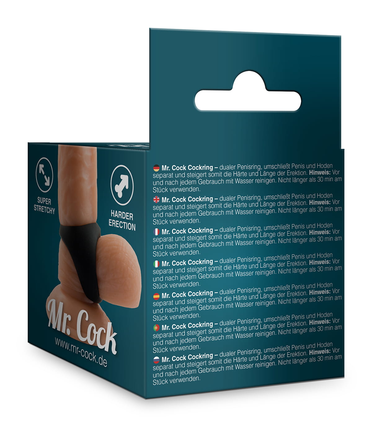 Podwójny pierścień Mr. Cock Drop - szczelnie otacza penisa i jądra, a tym samym zwiększa twardość i długość erekcji.