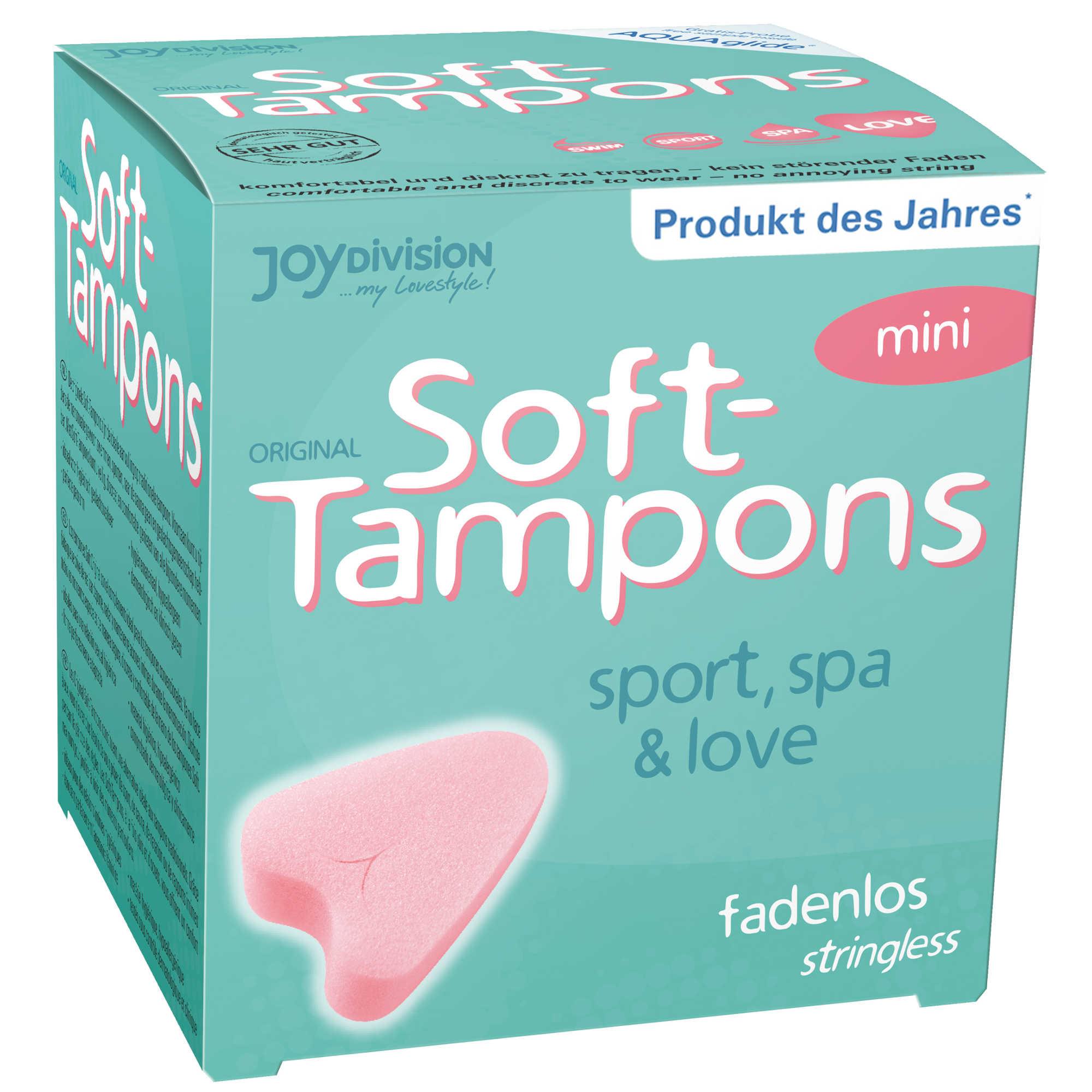 SOFT-TAMPONS to idealne rozwiązanie na szczególne momenty w życiu każdej kobiety. Coraz więcej kobiet decyduje się na stosowanie tamponów podczas stosunków płciowych w czasie cyklu miesiączkowego. Dzięki nim stosunek płciowy staje się komfortowy i jest czystą przyjemnością bez ograniczeń - nie ma już obaw o zabrudzoną pościel i materac lub konsternację partnera. Podczas używania Soft-Tampons Twój partner nie wie, że masz okres ! Teraz jest już to możliwe. Sex przez cały miesiąc ! Dzięki Soft-Tampons niemieckiej firmy JOYDivision możesz bez kłopotu korzystać z :