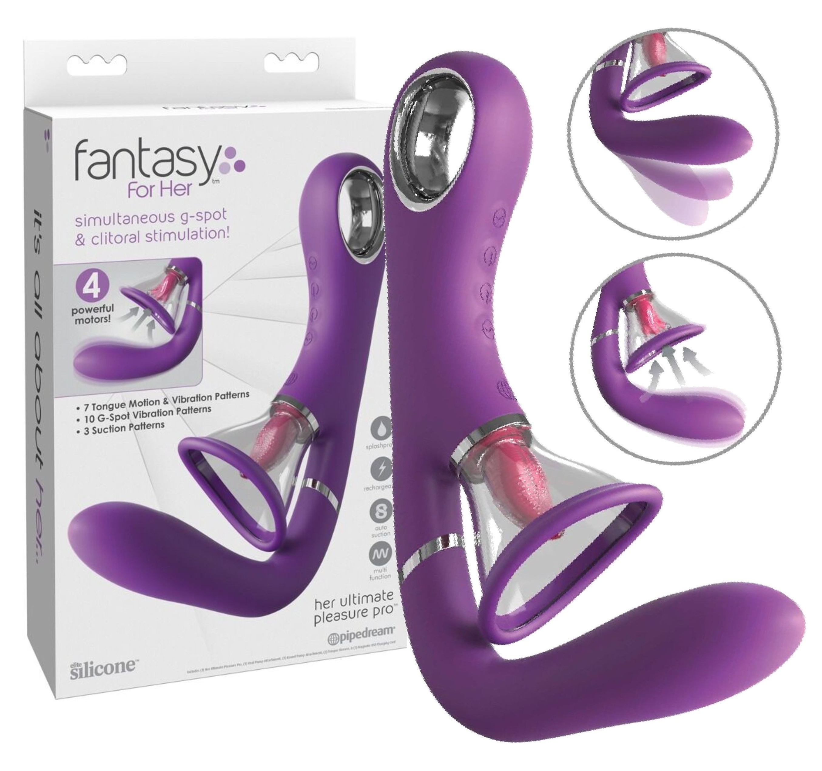 Przygotuj się zatem na oszałamiające, holistyczne i najprzyjemniejsze orgazmy, jakie kiedykolwiek będziesz mieć. Umieść klosz na łechtaczce - ssanie uprzyjemnia dodatkowo cudownie poruszający się, miękki język, drażniący bezpośrednio najbardziej wrażliwy punkt. To uczucie jest absolutnie i nieopisanie przyjemne. Jeśli masz problemy z wytworzeniem próżni, użyj lubrykantu na bazie wody. Pomoże to uszczelnić drobne nierówności i utrzymać próżnię. Model Fantasy For Her Her Ultimate Pleasure Pro to nowoczesne i wszechstronne rozwiązanie dla osób poszukujących zaawansowanej technologii w zaciszu swojej sypialni, wykorzystujące najnowsze osiągnięcia w dziedzinie ergonomii oraz materiałoznawstwa. Używaj zabawkę wyłącznie z lubrykantami na bazie wody. Wibrator wyczyścisz ciepłą wodą i łagodnym mydłem. Jeśli wolisz specjalne czyszczenie, zalecamy użycie środka do czyszczenia zabawek erotycznych.