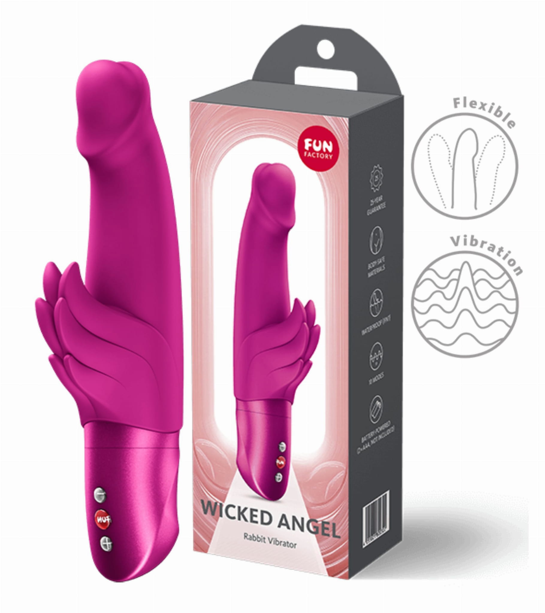 - Bezpieczeństwo i trwałość (25 lat gwarancji!) : wibrator wykonany jest z medycznego silikonu klasy premium. Fun Factory to marka, dla której jakość jest religią. WICKED ANGEL to produkt, który nie pochodzi z masowej, dalekowschodniej produkcji. To europejska myśl techniczna, objęta niespotykaną 25-letnią gwarancją na trwałość materiału.