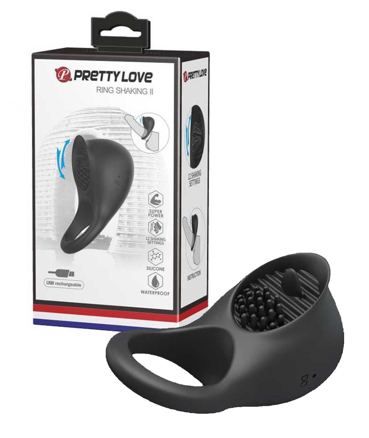 WIBRUJĄCY PIERŚCIEŃ NA PENISA PRETTY LOVE SHAKING II Z RUCHOMYM JĘZYCZKIEM