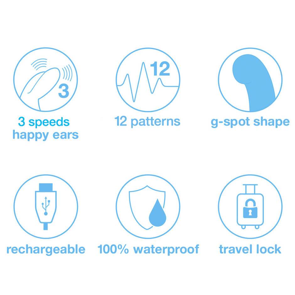 WODOODPORNY WIBRATOR G-SPOT HAPPY RABBIT Z DWOMA SILNIKAMI Gwałtowne podniecenie dzięki 2 silnym silnikom, 12 funkcjom wału i 3 prędkościom królika, jest w zasięgu Twoich rąk! Zalecany do połączonej stymulacji łechtaczkowej i penetrującej, intensywna przyjemność i duża dawka szczęścia należy do Ciebie dzięki wibratorowi G-Spot Happy Rabbit. Wykonany z najwyższej jakości bezpiecznego dla skóry silikonu jest całkowicie hipoalergiczny. Wibrator pomimo dwóch silników o ogromnej mocy jest ultra cichy, dodatkowo dzięki całkowitej wodoodporność możesz cieszyć się nim dyskretnie podczas relaksującej kąpieli i mieć pewność, że nikt nie usłyszy. Zabawa w sypialni ? Nic prostszego możesz nim się cieszyć, gdzie tylko zechcesz. W przypadku, gdy będziesz potrzebować, większego poślizgu wystarczy, że użyjesz niewielkiej ilości lubrykantu na bazie wody. Jeśli zechcesz wziąć go z sobą w podróż, nie musisz się martwić, że włączy Ci się przez przypadek, ponieważ posiada blokadę podróżną, która temu zapobiega. Pełne naładowanie zajmuje około 2,5 godziny, pozwala to na około 2 godziny zabawy. Podsumowanie :