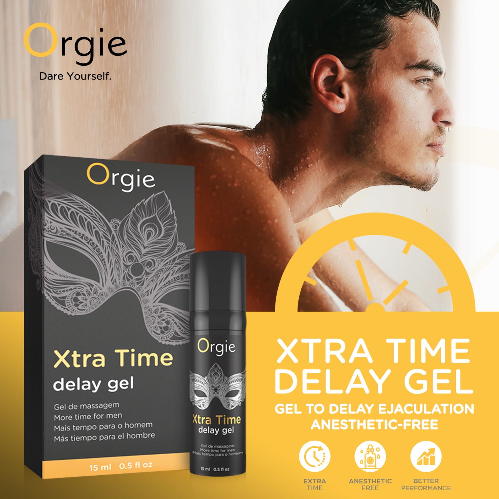 Przedwczesny wytrysk jest częstym problemem, ale nie jest przeszkodą do niepokonania ! Żel Orgie Xtra Time pomoże zmniejszyć wrażliwość Twojego penisa i w ten sposób przedłużyć czas trwania erekcji oraz stosunku. Działa dokładnie w miejscu aplikacji zmniejszając wrażliwość żołędzi prącia. Wystarczy kilka sekund by doznać uczucia chłodzenia. Żel Xtra Time Delay pomaga wydłużyć czas trwania aktu miłości, ponieważ zawiera skuteczne działające naturalne składniki zmniejszające wrażliwość penisa. Rozkoszuj się sobą i swoim partnerem, a także niekończącą się miłością, dzięki temu luksusowemu produktowi.