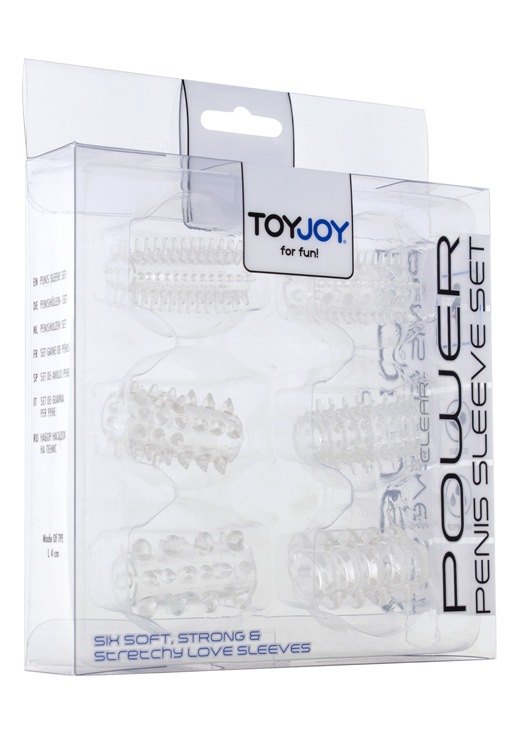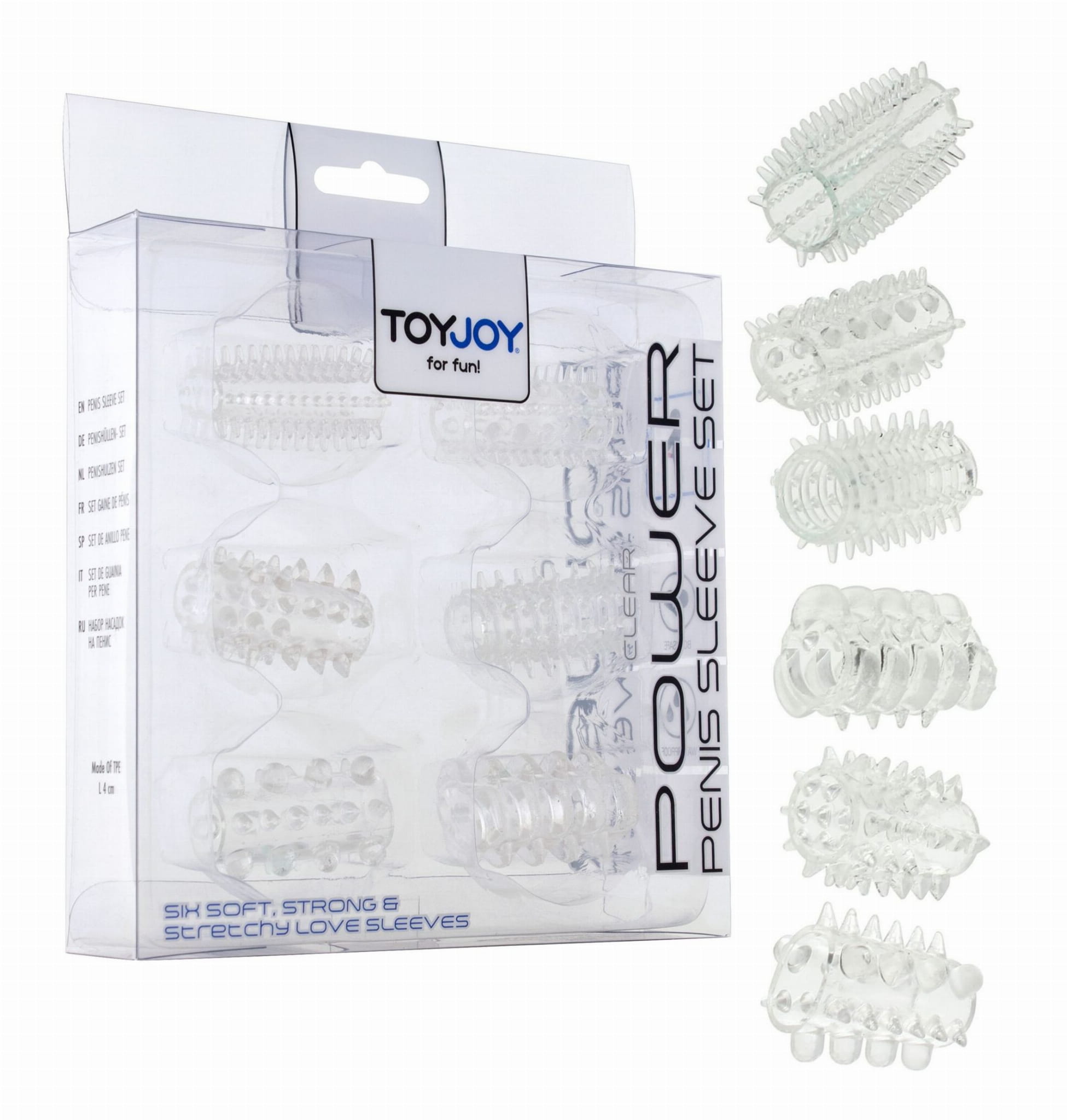 Zestaw sześciu nakładek na penisa Power Penis Sleeve Set. Nakładki posiadają liczne i zróżnicowane wypustki, zgrubienia, które pobudzają i stymulują wnętrze pochwy oraz łechtaczkę Partnerki podczas stosunku.