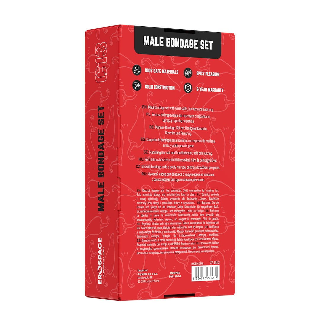 Zestaw Male Bondage Set pozwala na ograniczenie swobody ruchów, co potęguje intensywność doznań i wprowadza nowy poziom zmysłowych wrażeń.