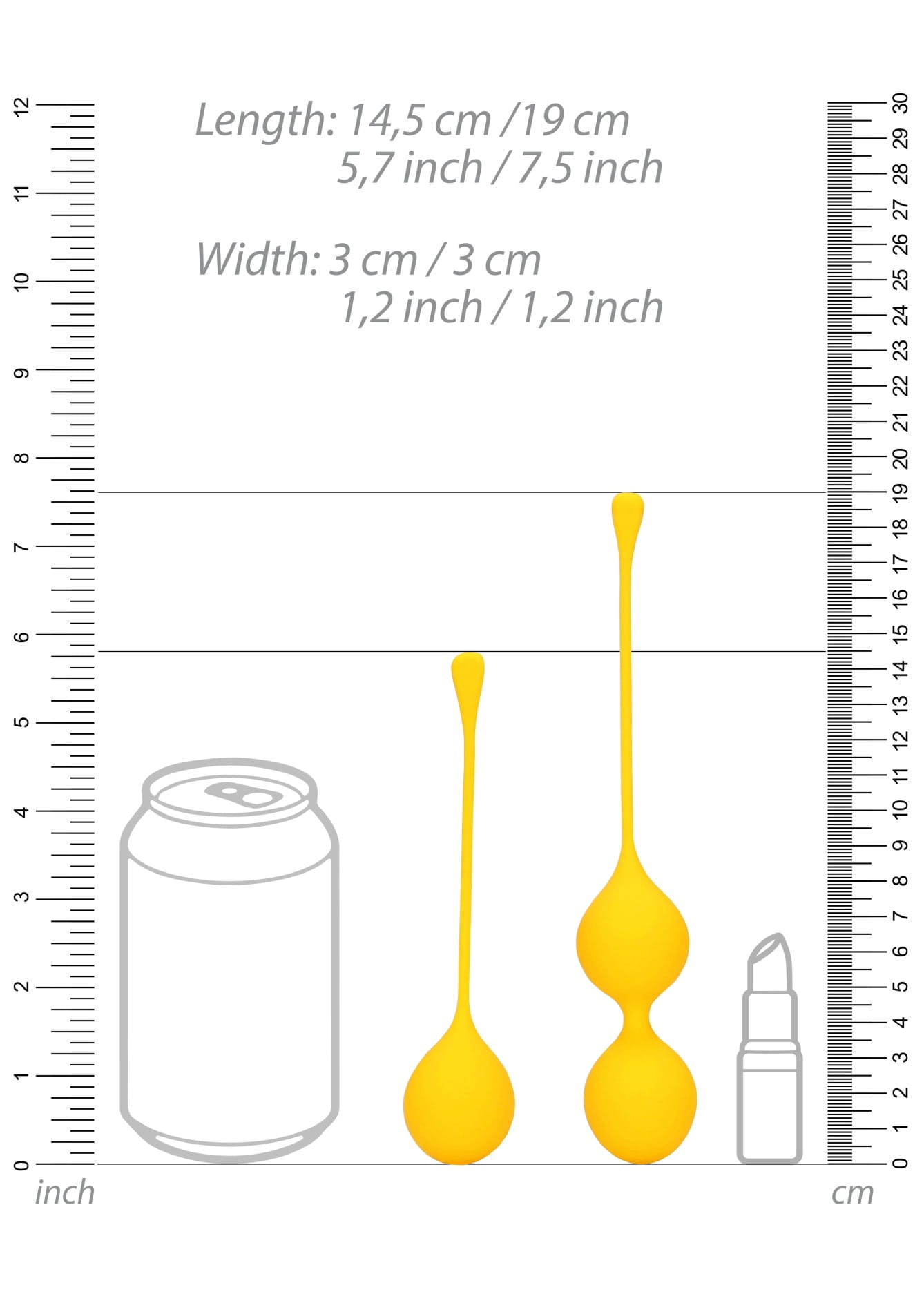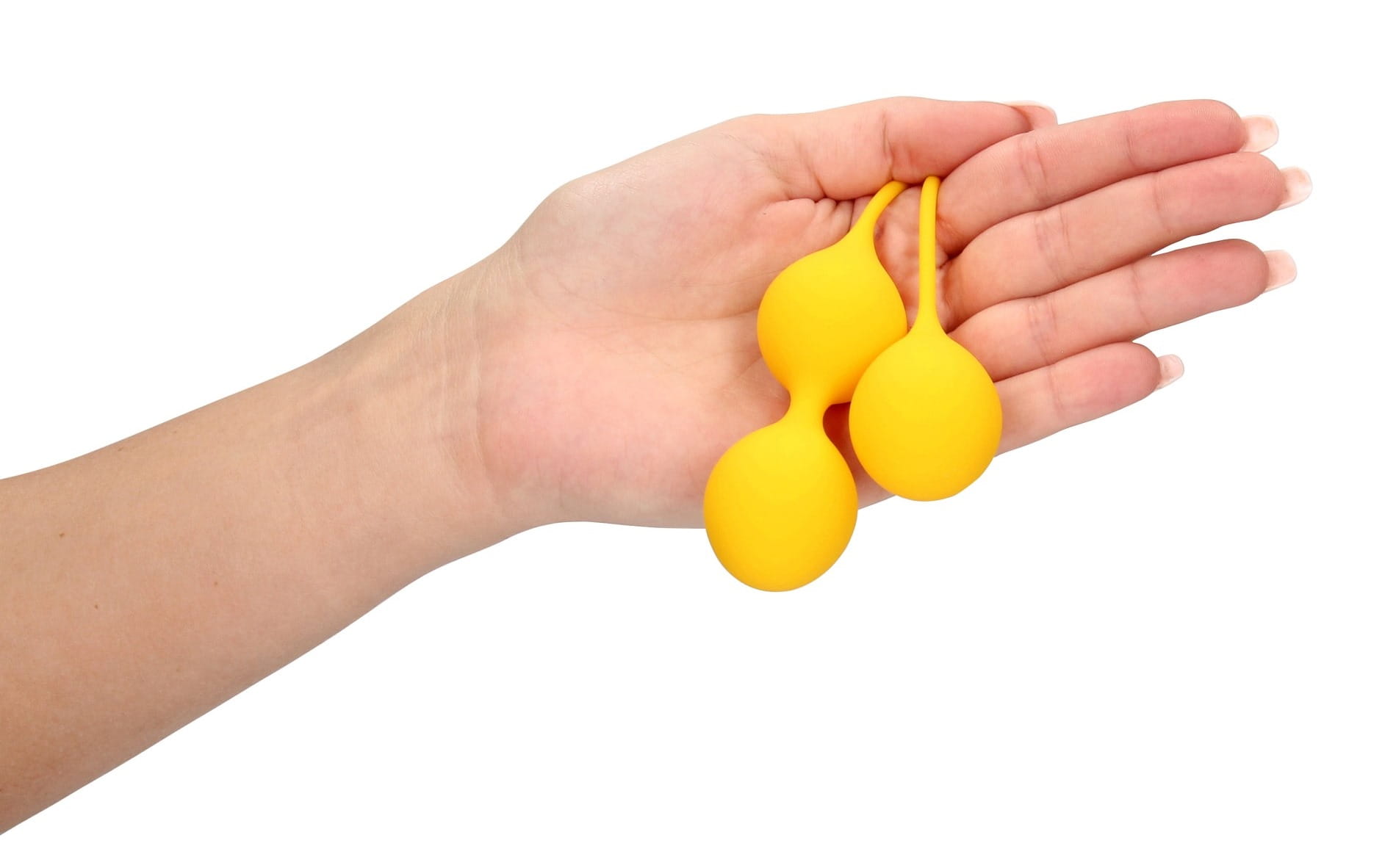 Zestaw żółtych, silikonowych kulek do ćwiczeń mięśni Kegla. Zaprojektowany do codziennego treningu, a tym samym poprawy napięcia i siły mięśni dna miednicy, wpływając na Twoje zdrowie, ogólne samopoczucie i przyjemne doznania płynące podczas sexu. Wykonane z delikatnego, aksamitnie gładkiego i elastycznego materiału - silikonu medycznego, który jest całkowicie bezpieczny i higieniczny, przez to łatwy do utrzymania w czystości. Wzmocnienie mięśni Kegla wiąże się z lepszą kontrolą nad ciałem podczas stosunku, silniejszym orgazmem i większą satysfakcją z penetracji i stosunku z Partnerem. Jest również doskonałą profilaktyką przed dolegliwościami związanymi z ich osłabieniem, co z wiekiem następuje naturalnie. Po prostu zaaplikuj je do pochwy pokryte lubrykantem na bazie wody i noś, np. podczas wykonywania codziennych prac domowych. Stopniowo zwiększaj długość ćwiczeń, a zobaczysz, że z czasem dojdziesz do perfekcji ! Odkryj niekończące się chwile radości i zaskoczenia z tym zestawem treningowym Loveline Carambola.